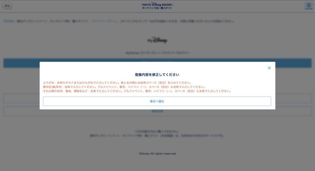 • MyDisneyアカウント作成時に起きるの3大エラーの対処法