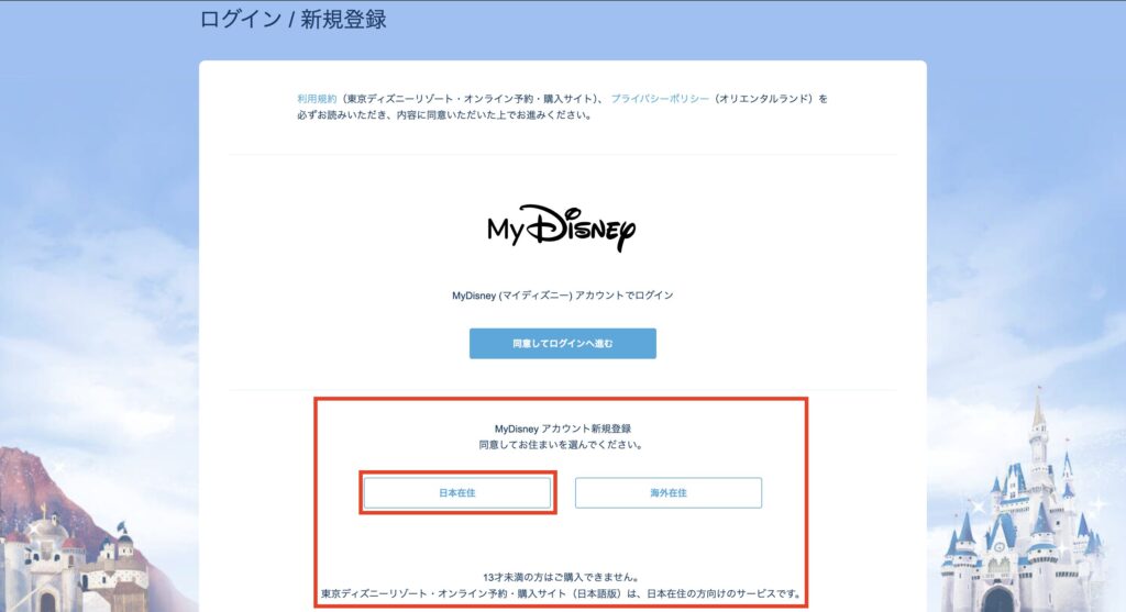 MyDisney(マイディズニー)アカウントのログイン画面に行き、「日本在住」を選択しましょう。