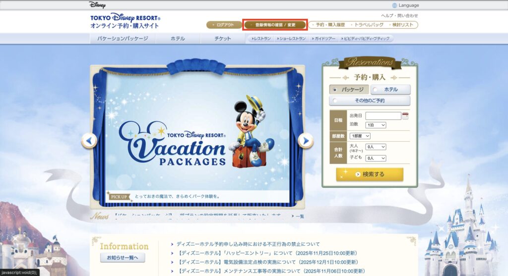 • ディズニーホテル(ミラコスタ等)の宿泊予約