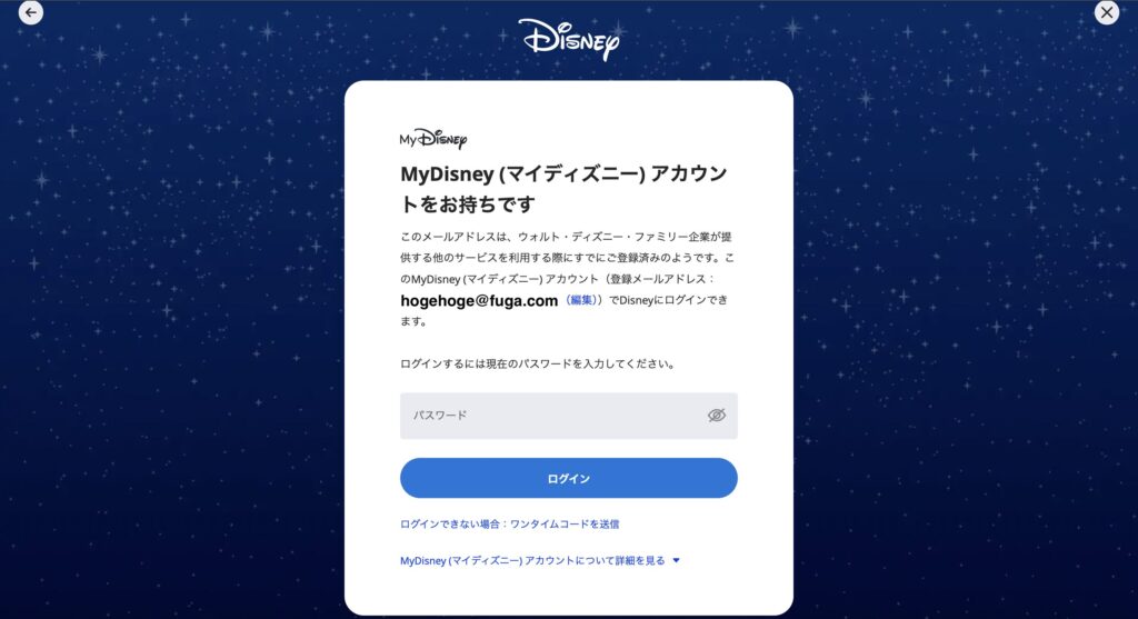 MyDisney(マイディズニー)アカウント のログイン画面に行き実際にログインしてみましょう!